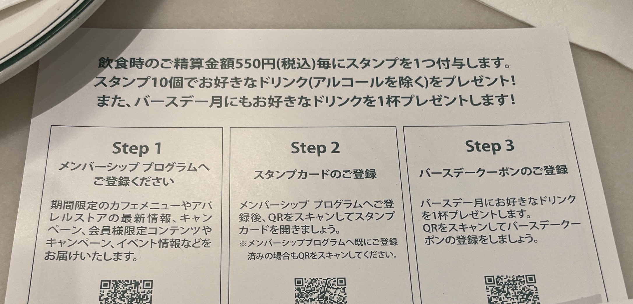 今度はLINEでスタンプ貯めたらどーのこーのありそうなこと書いてあります。メンバーシッププログラムに登録して、スタンプカードを登録して、バースデークーポンの登録をします。これでバースデー特典が受けれる仕組みになったんですね!