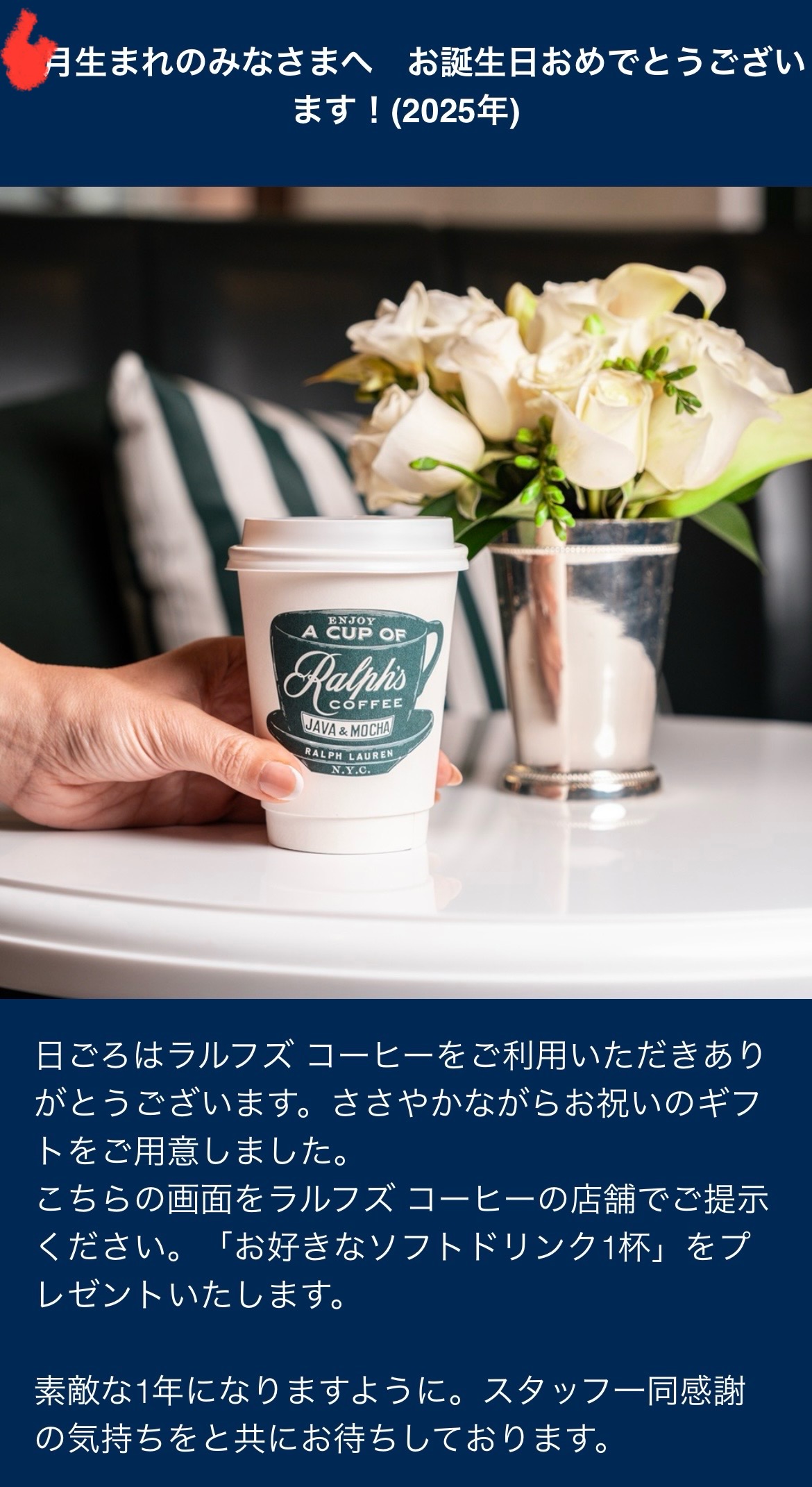 2025年 誕生日特典「ラルフズカフェ」で無料ドリンクを飲んだ